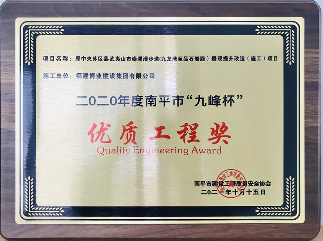 南平市“九峰杯”优质工程奖