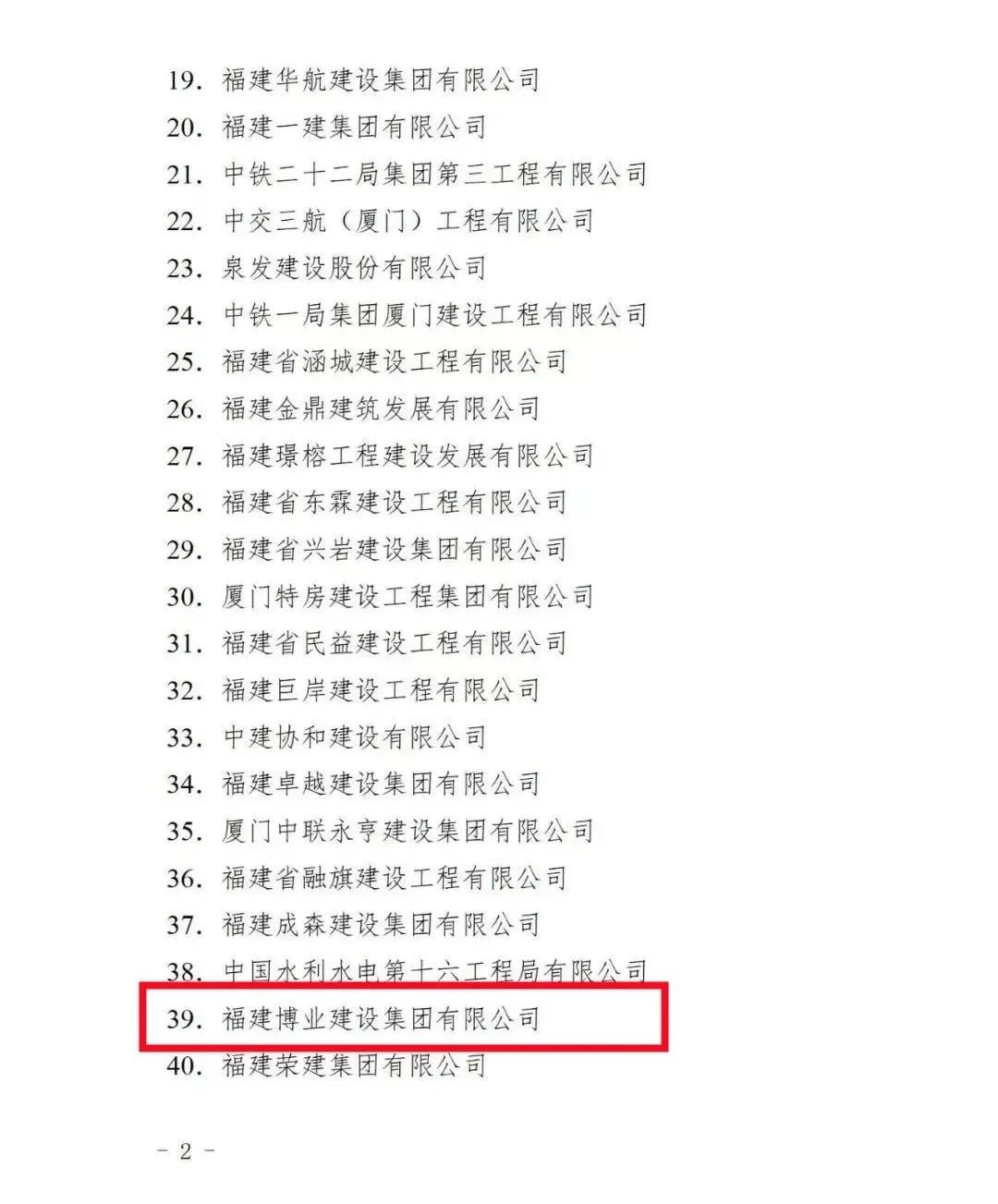 近日,福建省住房和城乡建设厅公布了2022年福建省建筑业龙头企业名单,我公司成功入选。